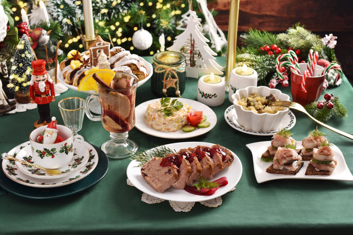 Acompanhamentos: farofa natalina, arroz com passas e nozes, legumes assados.